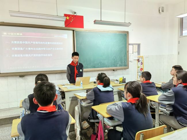 2024年3月25日下午,初一年级的少先队员们迎来了一堂特殊的班会课——“青春心向党 奋进新征程”共青团知识宣讲活动。
