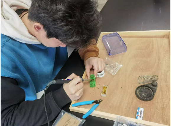 在焊接环节,学生们经历了从生疏到熟练的蜕变。起初,电烙铁在他们手中显得难以驾驭,焊锡的融化和附着总是不尽人意,但他们没有被困难打败。通过不断地练习和摸索,学生们逐渐掌握了焊接的技巧和要领,能精准将各个元件焊接到电路板上,确保了电路连接的稳定性和可靠性。每一次成功的焊接背后,都是学生们耐心与毅力的体现,他们在这个过程中学会了如何应对挫折,如何在反复的尝试中不断改进,这种坚韧不拔的精神品质正是实践活动带来的宝贵财富。