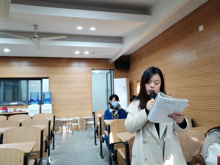 随后,由教研员徐静芳老师主持了评课活动。首先,龚老师就本节课的教学目标、教学内容、教学设计等阐述了她的设计思路,然后,来自各校的教师代表就本节课进行了热烈的研讨,老师们对龚瑶瑶老师的课给予了高度的评价,同时也提出了中肯的建议。