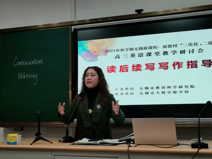 为了更好地研究探讨高考英语写作指导策略,由无锡市教科院组织的无锡新课程、新教材“二优化·二提高” 高三教学研讨会于2021年12月2日在无锡市大桥实验学校召开。来自无锡市区和滨湖区的一百多位奋战在高三一线的全体英语教师积极参加了此次研讨活动,本次活动充分体现了无锡市高三英语教师积极的研讨热情和孜孜以求的进取精神。此次无锡市高三英语教学研讨在新高考、新课标、新课程的大背景下,进行高三英语“二优化·二提高”主题学习与研讨活动。作为承办单位的无锡市大桥实验学校高三英语备课组以“读后续写的写作指导”为主题,由龚瑶瑶老师开设读后续写写作公开课,为高三备考学生提供系统全面且细致入微的指导。龚瑶瑶老师的这堂课不仅帮助学生拨开了读后续写的层层迷雾,也为在场来自无锡市各所高中学校的听课老师带来了新视角,为英语读后续写写作教学提供了新思路。