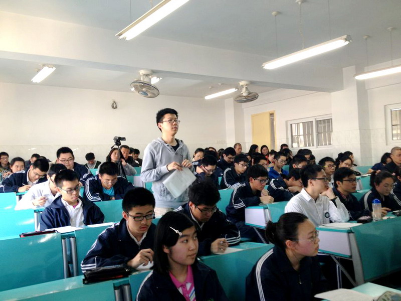 2015年4月22日下午,物理组陆敏老师开设了一堂高三二轮复习课。陆老师沉着自若,深入浅出,娓娓道来。高三学生思维敏捷,回答高效,功底扎实。整堂课围绕“物理图像”展开,由简单的直线图像到复杂的曲线图像,从“点、线、面”提取信息,将繁琐的情景一一简化,展露本质。课堂利用多种展示手段,PPT展示题目与归纳,板书展示分析过程,配合默契。