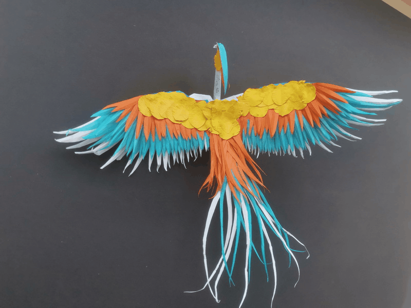 从前我认为折纸是十分单一的,只是赋予纸张以某种形状,经过6节课短暂的学习,却发现哪怕是再简单不过的千纸鹤也可以包罗万象。当折纸与剪纸、绘画、插花等元素碰撞在一起时,也出乎意料地擦出了别样精彩的火花。看着同学们精心装饰的纸鹤,那些设计与组合当真与“千人千鹤”一般的巧妙、大胆。折纸不仅提高了我的动手能力,也激发了想象力,培养了认真、专注的态度,使我受益良多。