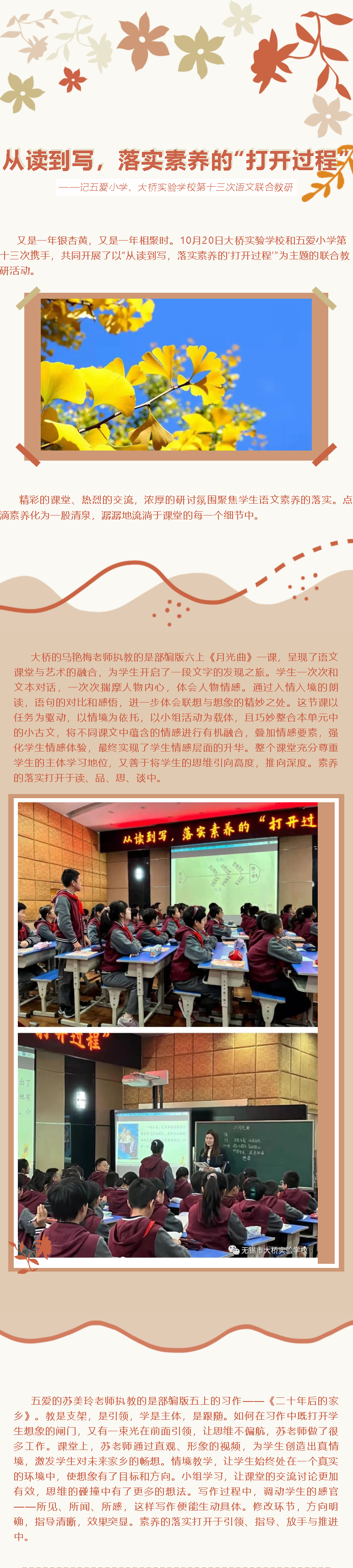 从读到写,落实素养的“打开过程”——记五爱小学、大桥实验学校第十三次语文联合教研