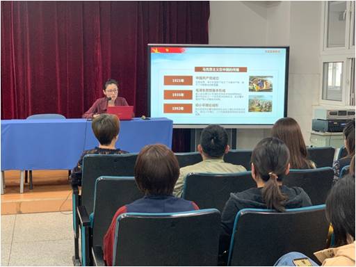 5月7日下午,两校区党史宣讲会现场,第二支部党员教师刘萍老师和高中部历史教师邱亮老师带头讲党史,从“新民主主义革命时期”、“社会主义革命和社会主义建设时期”、“改革开放和社会主义现代化建设时期”三个阶段讲述中国共产党光辉的历程。同志们认真聆听,以史为镜、以史明志。