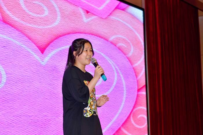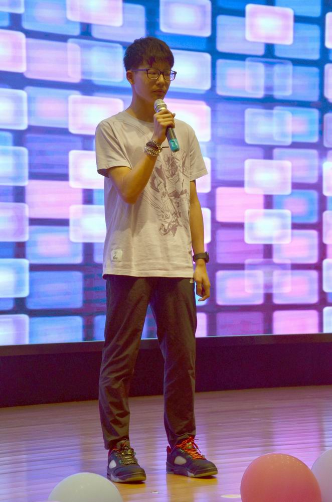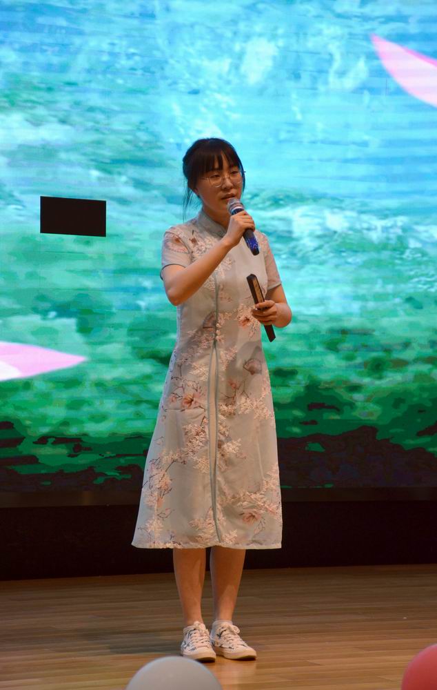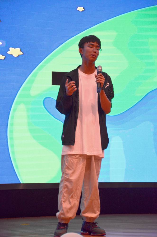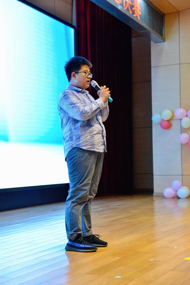 陈俊哲同学娓娓道来《灰色与青》。灰色指长大以后的世界,青代表儿时的世界。为什么长大之后的世界不能是天空一样的蓝色呢?所以勉励同伴和自己:朝阳升起来了,想起你,世界又是像天空一样湛蓝。