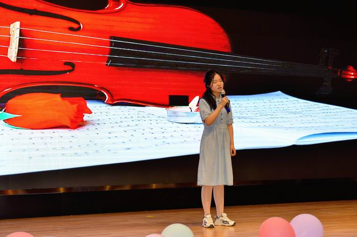 身着黑色长裙,戴着白色领花,周可敏同学一上场,就博得全场热烈的掌声与欢呼。然而真正使我们惊叹的,是她令人惊艳的演唱。从音准到音调再到音色,她把握得恰到好处。她的倾情演绎让我们领略了她阳光少女的风采。