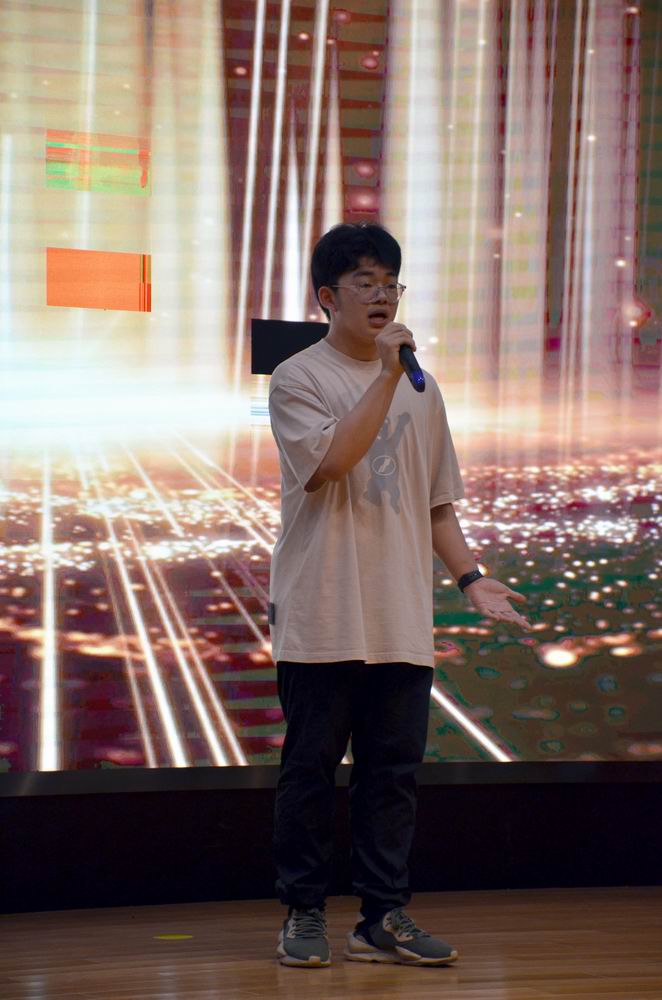 金洋帆同学以轻快明亮的嗓音给我们带来了一首不一样的《lost boy》。他的歌声似精灵般跳动,全场都为其而欢呼。如泣如诉,不绝于耳。动人的音符与独特的嗓音相得益彰,他的深情将这首歌表现的淋漓尽致。动听的嗓音与歌曲主题契合度极高,妙处难于君说。掌声雷动,经久不息。