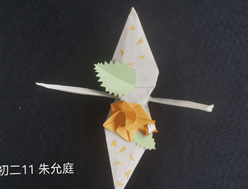 第二颗心叫"用心”。只有用心,你才会全身心地投入你手中或是一只翅膀,亦或是一丝小小的飘带上去,你会更注重细节,更在意微小的瑕疵,更追求完美。折纸,虽然不是特别重要的学科,你也许不会把它太当一回事,觉得它很无聊。但当你全身心投入其中,彼时,你才会发现它真正的乐趣。